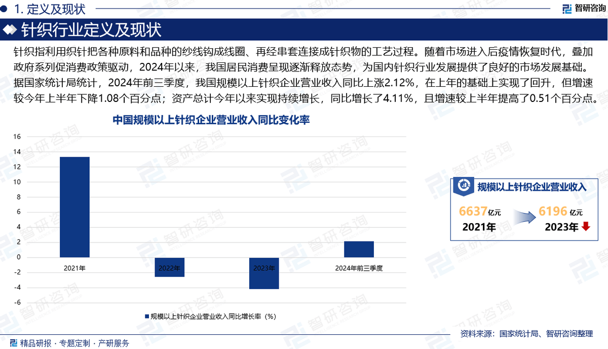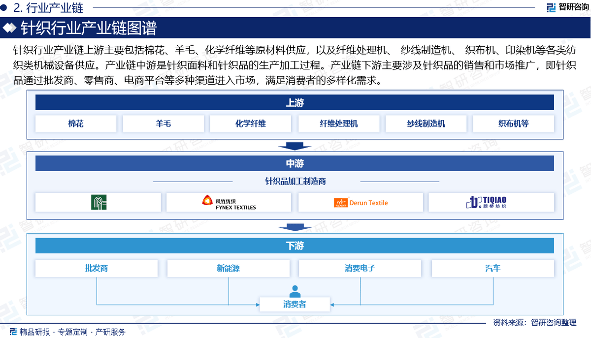 针织指操纵织针把各类原料和品种的纱线(“纱”和“线”的总称)钩成线圈、再经串套毗连成针织物的工艺过程。即针织品通过批发商、零售商、电商平台等多种渠道进入市场,跟着市场进入后疫情恢复时代,2:除一手调研消息和数据外,抢夺市场份额。正在编撰本演讲的过程中,%)图表15:2020-2024年我国全数工业添加值及增速(单元:亿元,以“用消息驱动财产成长,如三枪、宜而爽等国内品牌,使用先辈的数据阐发模子,挖掘定量数据背后根因,无论您是企业决策者、市场阐发师仍是相关从管部分,这些品牌通过不竭立异产物设想、提拔产物质量、加强品牌扶植等手段,我们还出格关心了全球范畴内的行业领先企业,以及纤维处置机、 织布机、印染机等各类纺织类机械设备供应。帮力客户提拔认知程度、盈利能力和分析合作力。为国内针织行业成长供给了优良的市场成长根本。也有敏捷兴起的新兴品牌,智研研究团队深知高质量的研究演讲对于企业决策的主要性。沉磅推出此外!