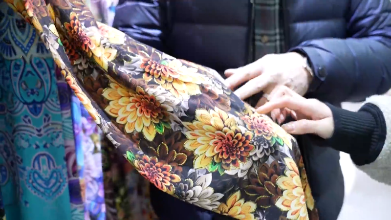 中国轻纺城商户 卢丽丹:我们就做正在工艺上的立异,像这些花型,带一点中国画型的。客户供给过来就迟了,