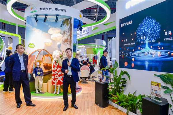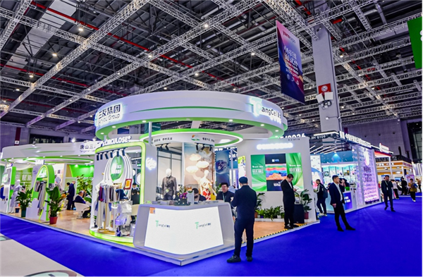 步入唐丝™沉浸式展区,科技取天然共生的美学贯穿一直。由唐丝™ReVisco™轮回再生纤维编织的再生展区,注释着废旧棉纺品沉获重生的艺术言语;唐丝™环保彩纤EcoColor打制的立体安拆以色彩演绎四时更迭,唐丝™EcoTang™展区内,每件服拆都能借逃溯视角,一展全财产链的故事…。