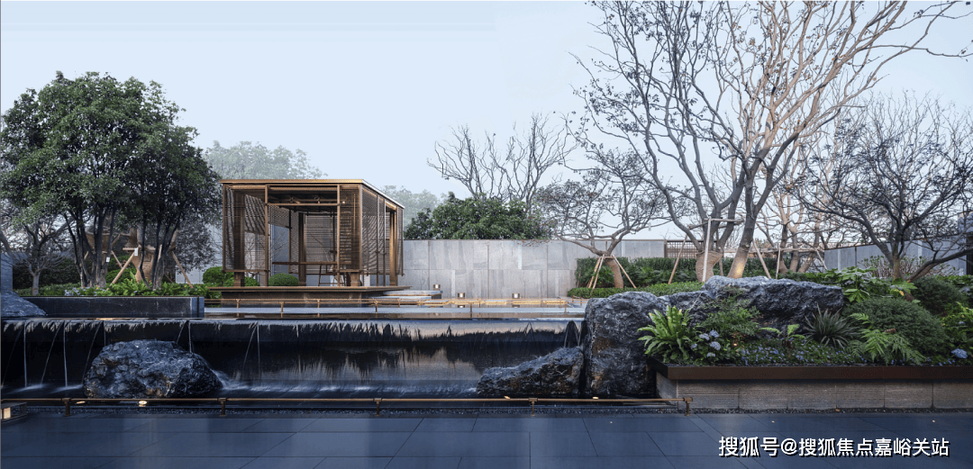 1000㎡水系为焦点,连系静水、叠水、瀑布等水景,再现古典意境;约8000㎡地方园林自创《溪山雪企图》画理,展示深远条理。